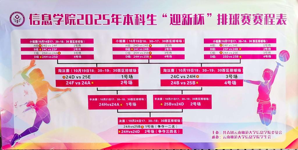 为丰富校园体育文化,提升新生团队协作与沟通能力,云南师范大学信息学院于2025年10月举办本科生“迎新杯”排球赛。本届赛事由学院本科生学生会承办,赛程安排紧凑、组织规范,赛场氛围热烈。